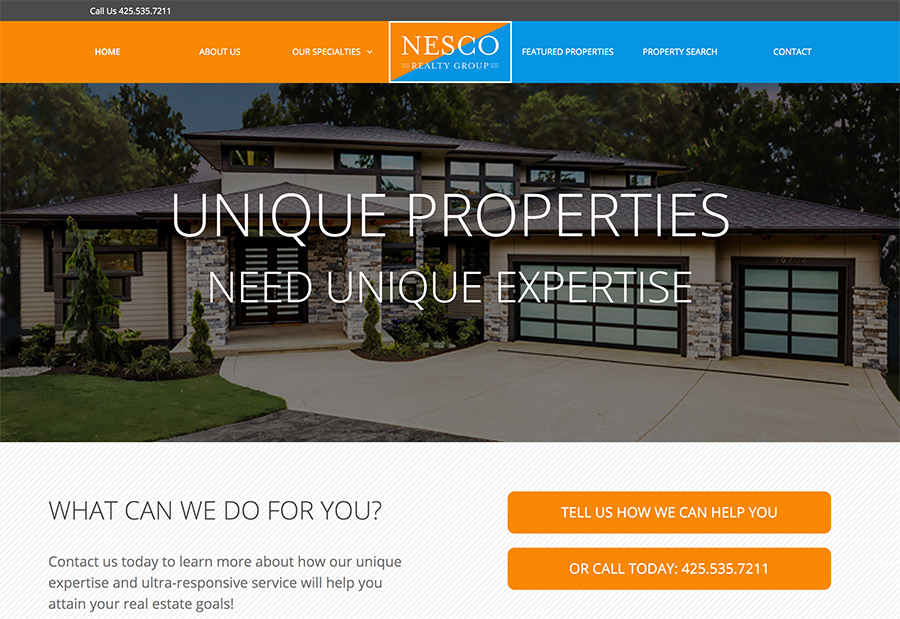 A fully customized website to match the logo and branding for this new business. IDX technology connects to thier company's NWMLS real estate feed, and early SEO strategies ensure this new site will quickly gain in rankings.