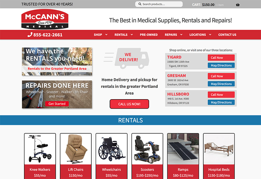An E-commerce site powered by WooCommerce. This was a complete site redo, heavily customized to accomodate over 100 product categories and many with unique attributes. Custom fields were created for the products, making it easier for the client to add and update products.